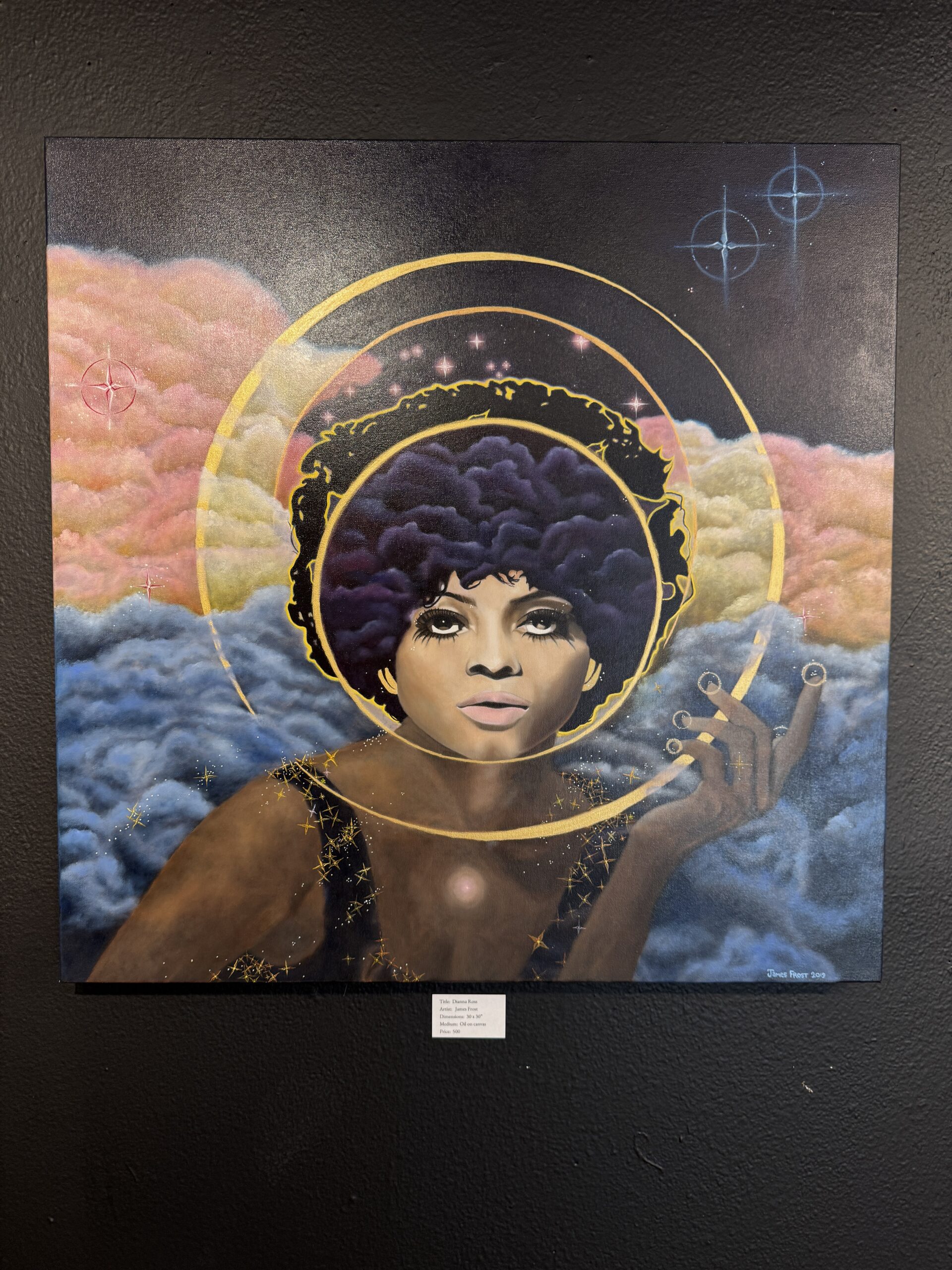 “Diana Ross” by James Frost — $700 (oil on canvas, 30″ x 30″)